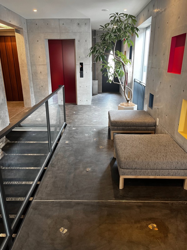 ルーセントカラーはコンクリート・モルタル床の風合いをそのままに、カラークリアで着色・浸透強化・防塵できる水性コンクリートステイン塗料です。 クラックや下地のムラもそのまま仕上がりに現れるため、通常の塗料では表現できないコンクリートならではのテクスチャーをデザインできます。