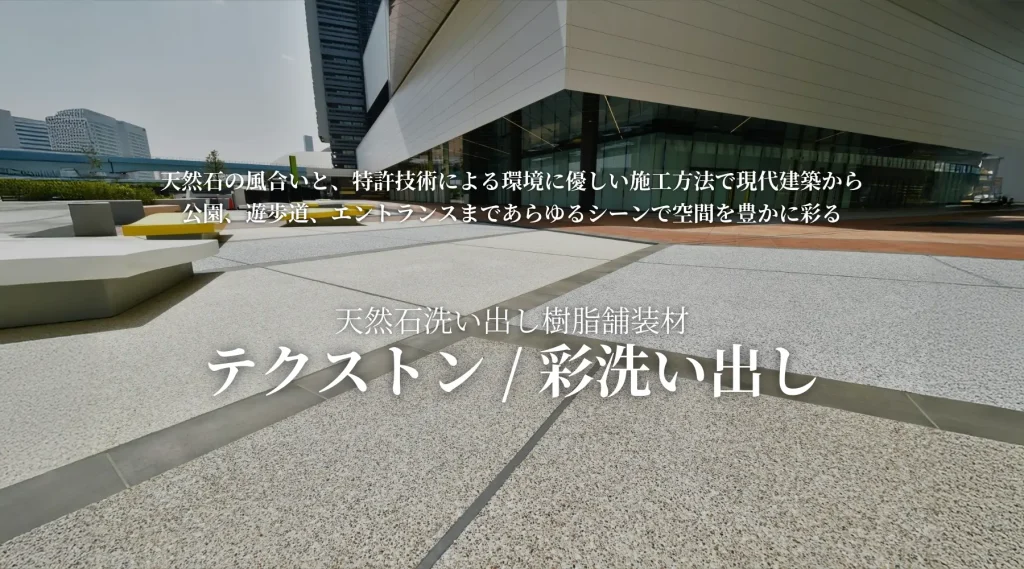 洗い出し工事まで請け負う「テクストン」と洗い出しの材料を販売する「彩洗い出し」の2つの形式で販売しています。
