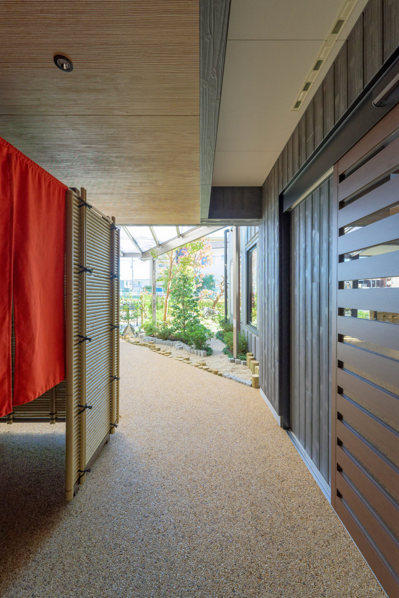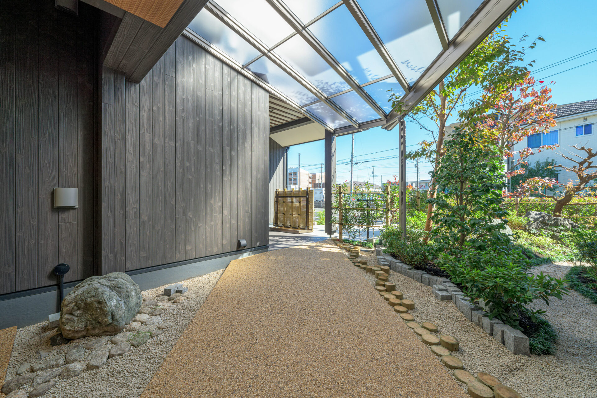 さらに、「アーバンロック」は防滑性と耐久性に優れており、安全性を確保しながらも美しい歩行空間を提供しています。和の美しさとモダンな機能性を兼ね備えた玄関アプローチが実現しました。