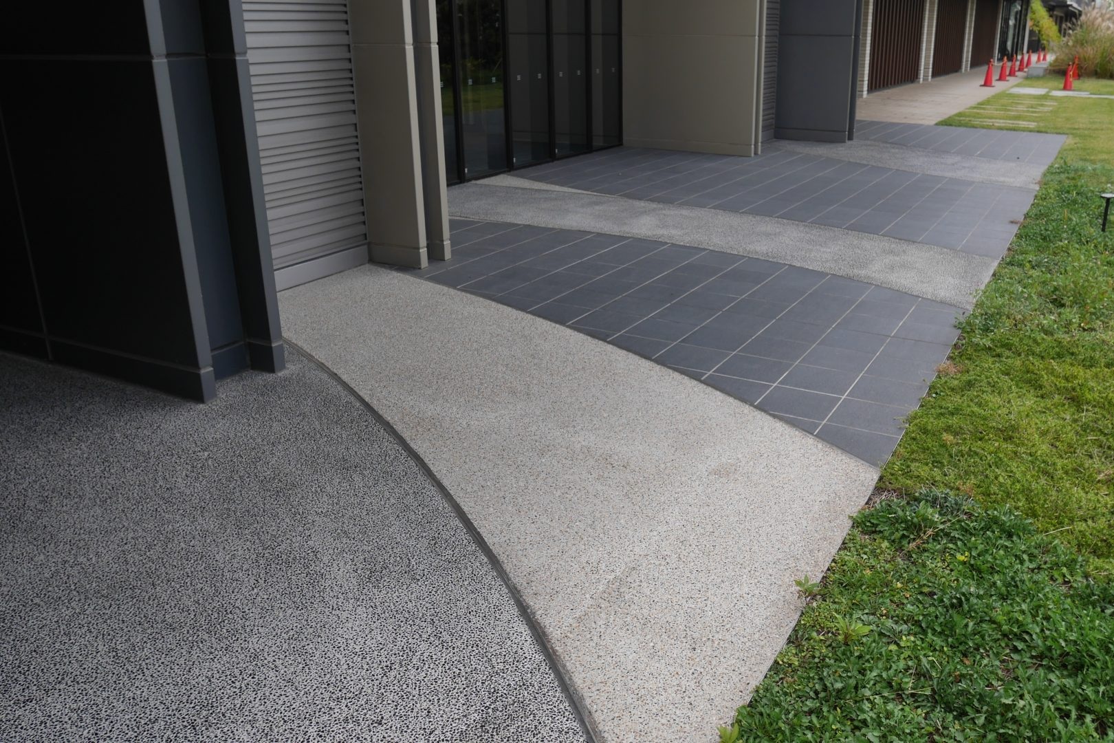 神奈川県相模原市にある相模川ふれあい科学館の外構エリアで、天然石洗い出し舗装材「テクストン」を使用した施工を行いました。科学館の理念である「自然との調和」をコンセプトに、風景に溶け込むデザインとモダン…