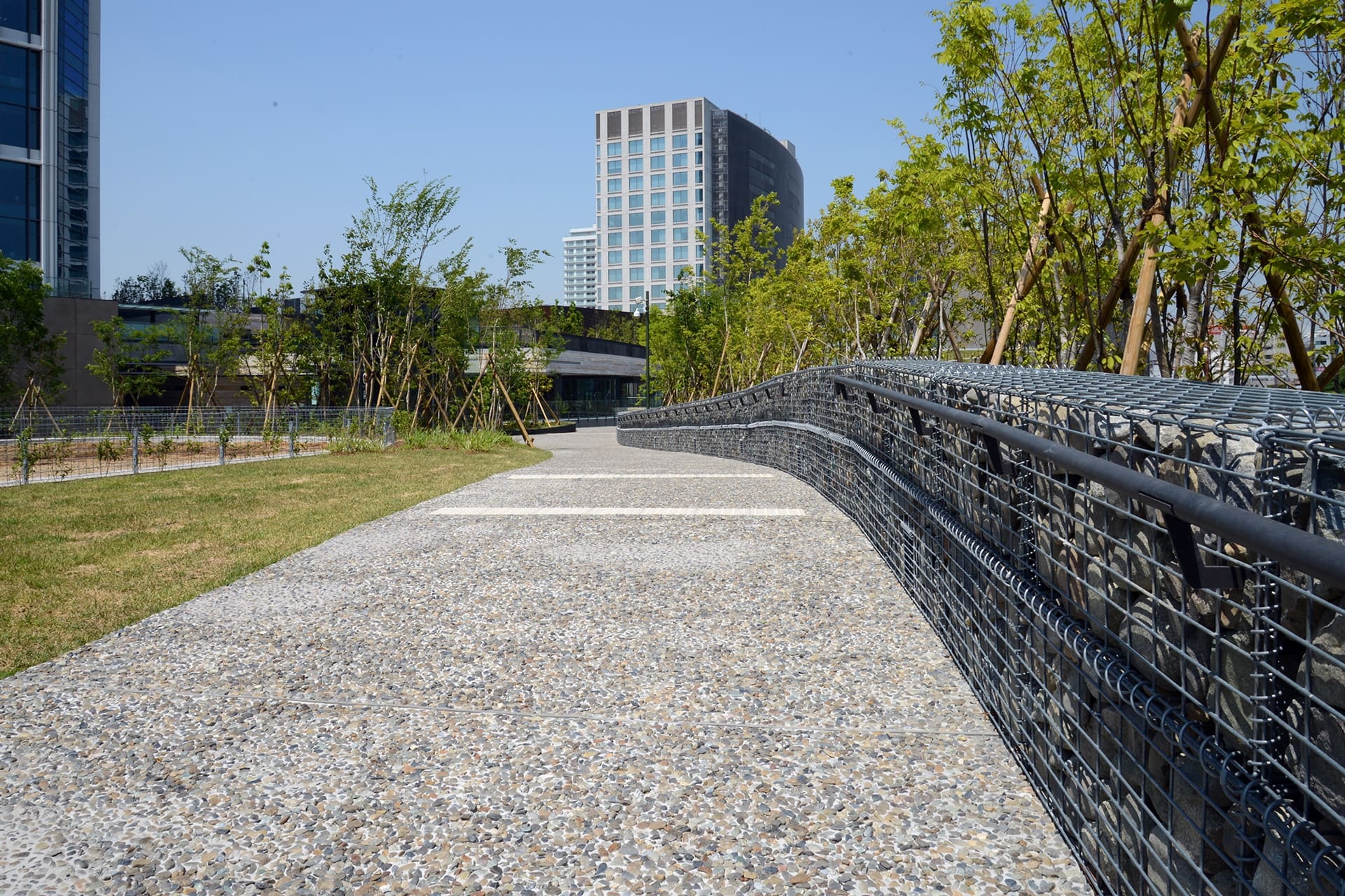東京都世田谷区に位置する二子玉川ライズのランドスケープ施工では、緑豊かな環境に調和する天然石舗装材「ペイブストン」を園路に採用しました。自然素材を活かした美しいデザインが特徴で、周囲の自然環境と調和し...